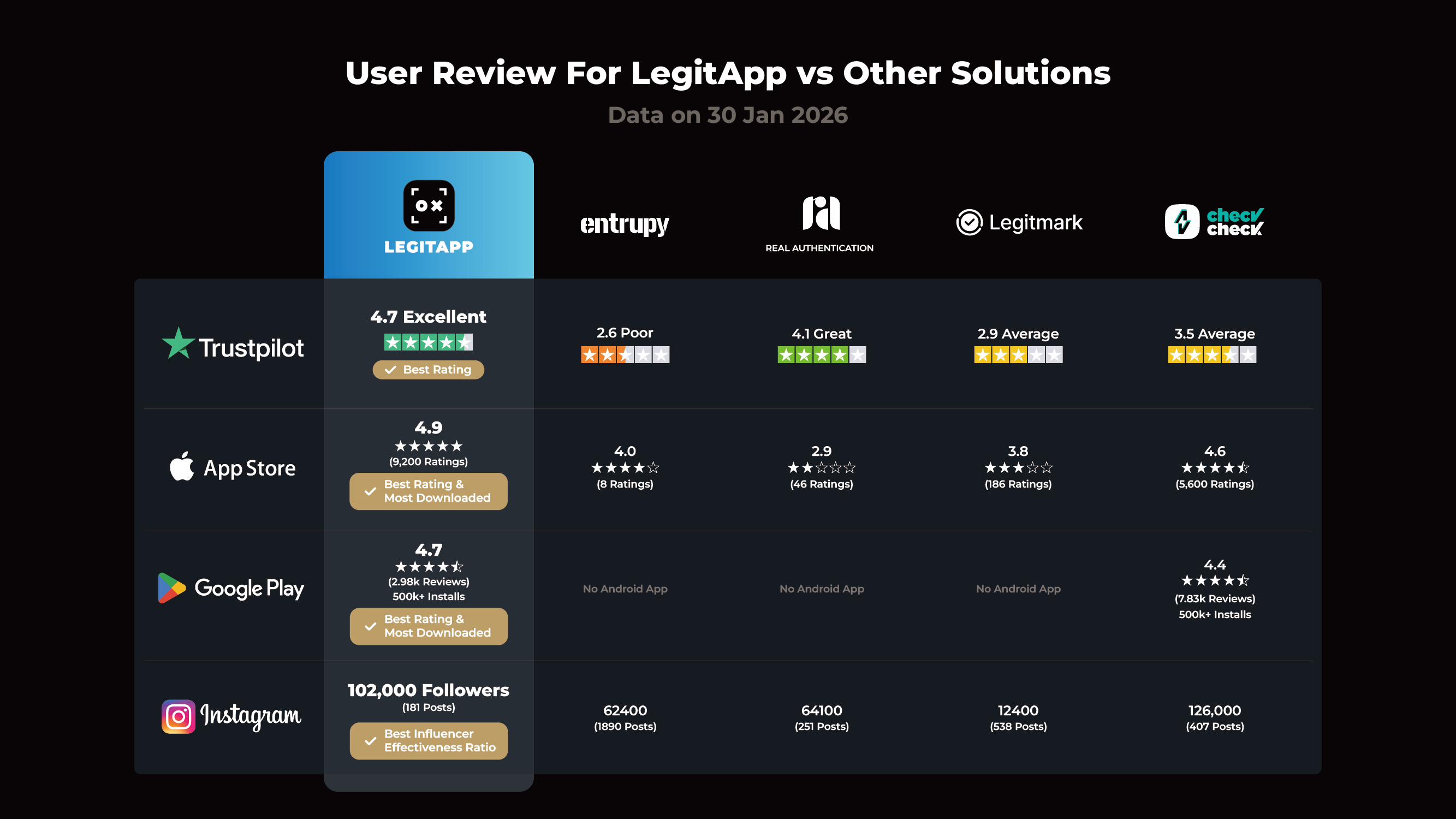 Authentication Platform Reviews Compared (2026): Trustpilot, App Ratings & Social Media Analysis | LegitApp | Your Trusted Partner in Luxury Authentication