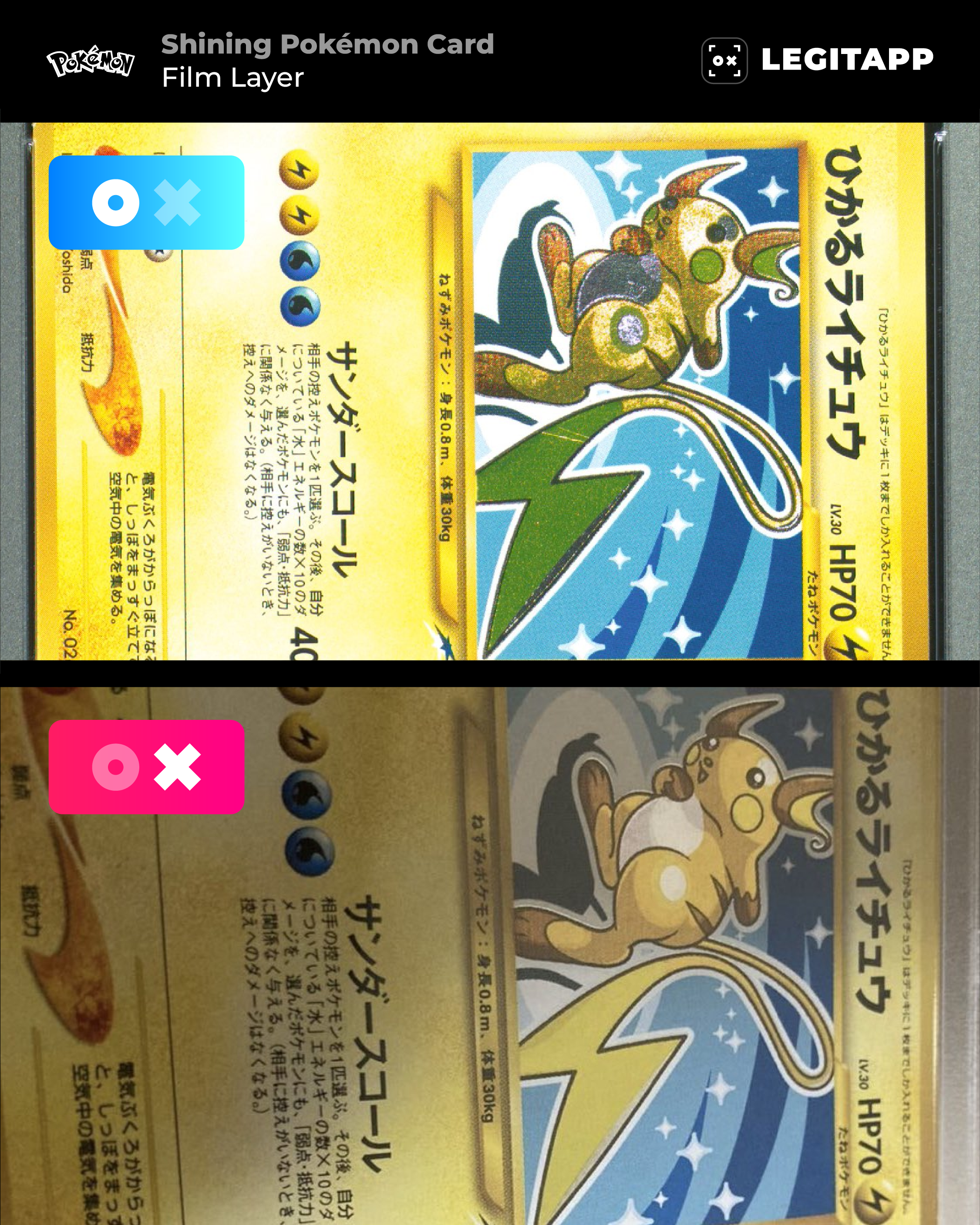 4. Proper Shining Pokémon film layer, not rainbow foil.