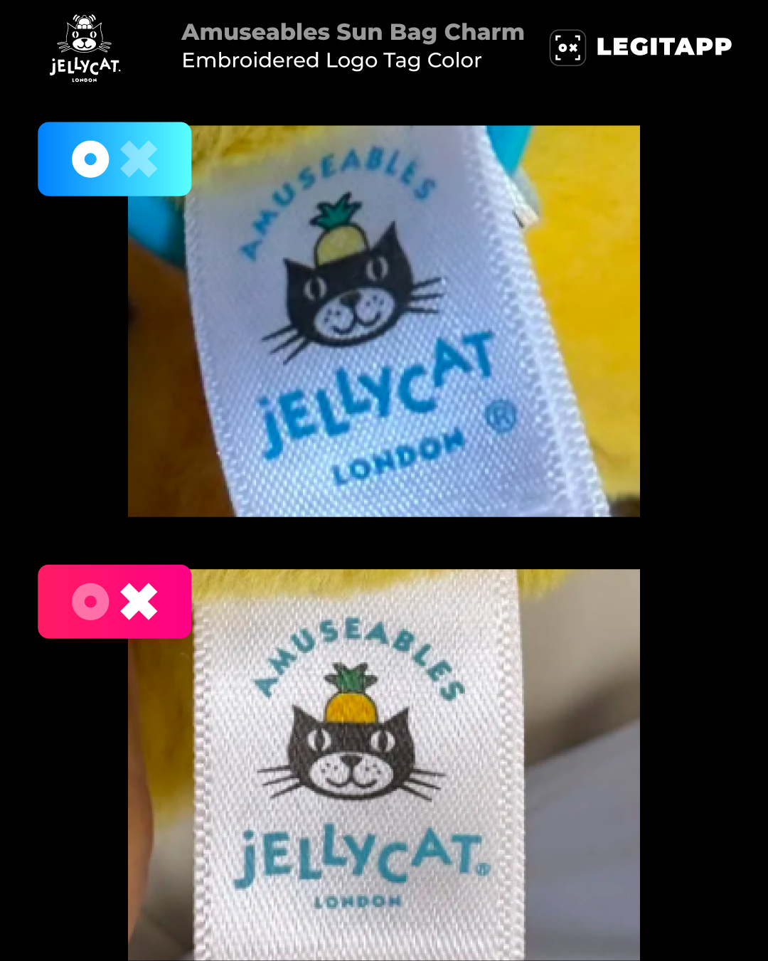 Not entirely sure whether your Amuseables Sun Bag Charm is genuine? LegitApp offers trusted photo-based authentication powered by advanced AI and reviewed by trained authenticators familiar with Jellycat products. Just upload clear pictures of your charm, including all tags and labels, and get a professional assessment of its authenticity.