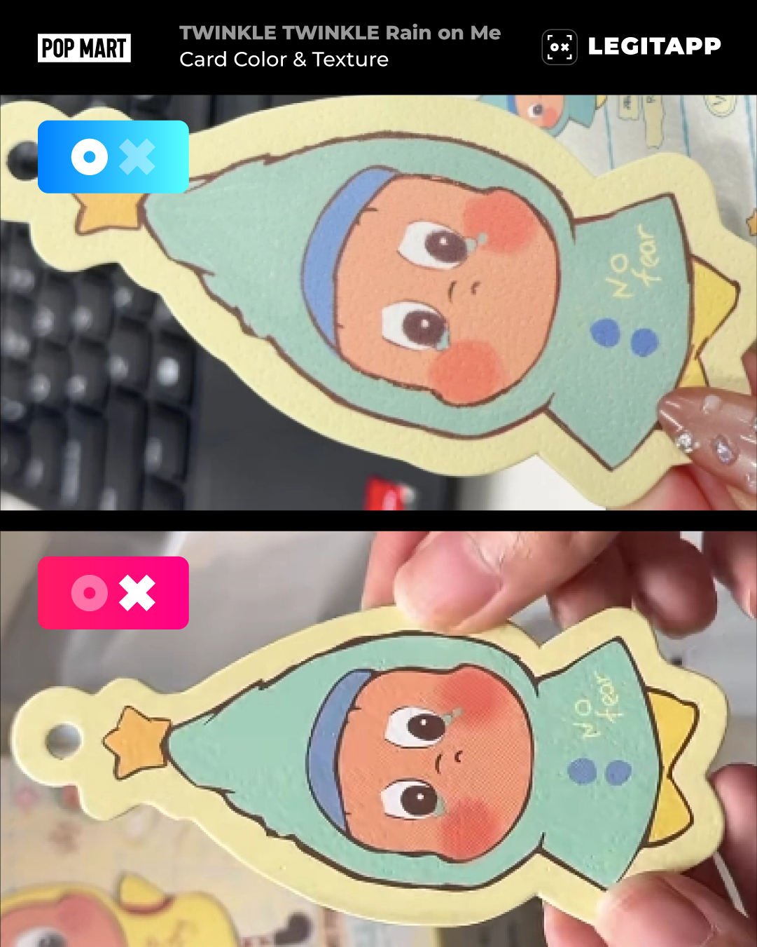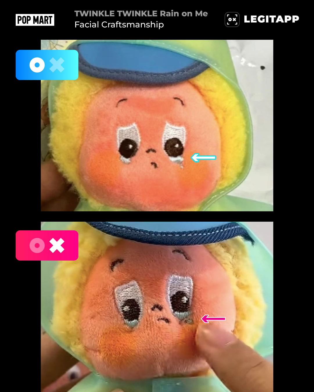 The TWINKLE TWINKLE “Rain on Me” plush pendant is part of POP MART’s whimsical Twinkle Twinkle lineup, featuring soft textures paired with weather-inspired elements like rain hats and cozy details. Its gentle color palette and cute character styling have made it a favorite among collectors. As with many popular blind box releases, replicas have surfaced. Below are some areas to examine when verifying authenticity.