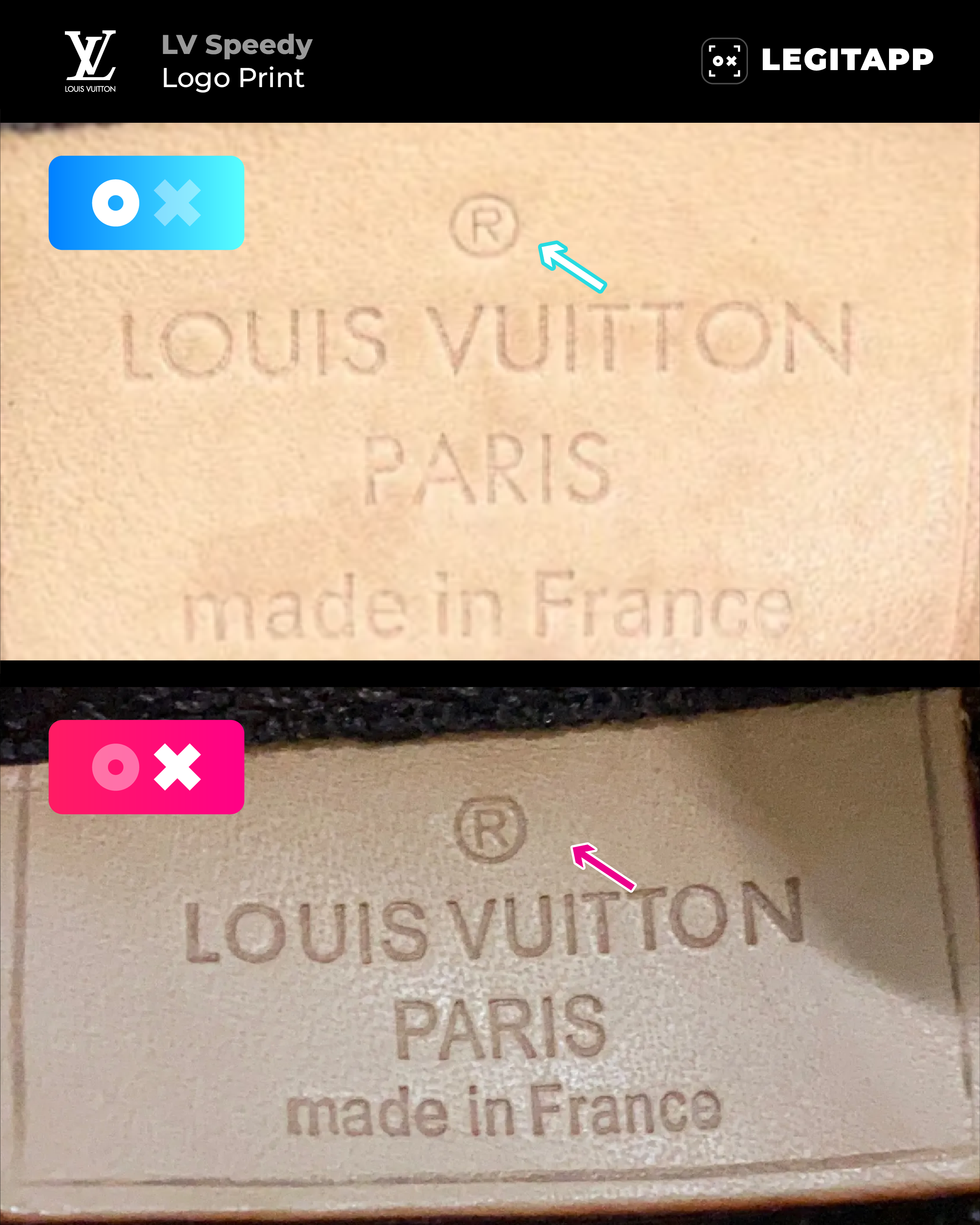 1. ✅ Logo ® should not be larger than the Os in “LOUIS VUITTON.”