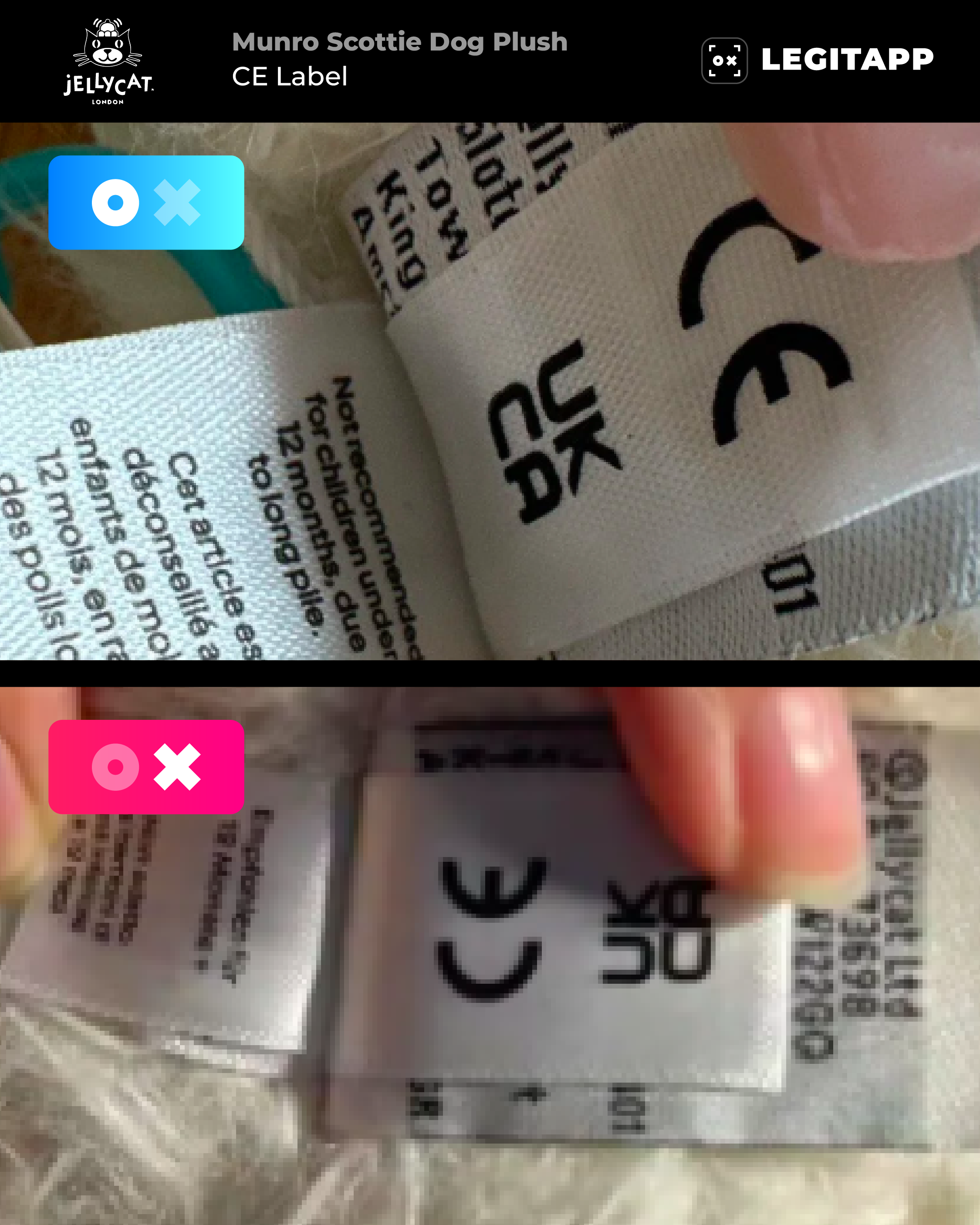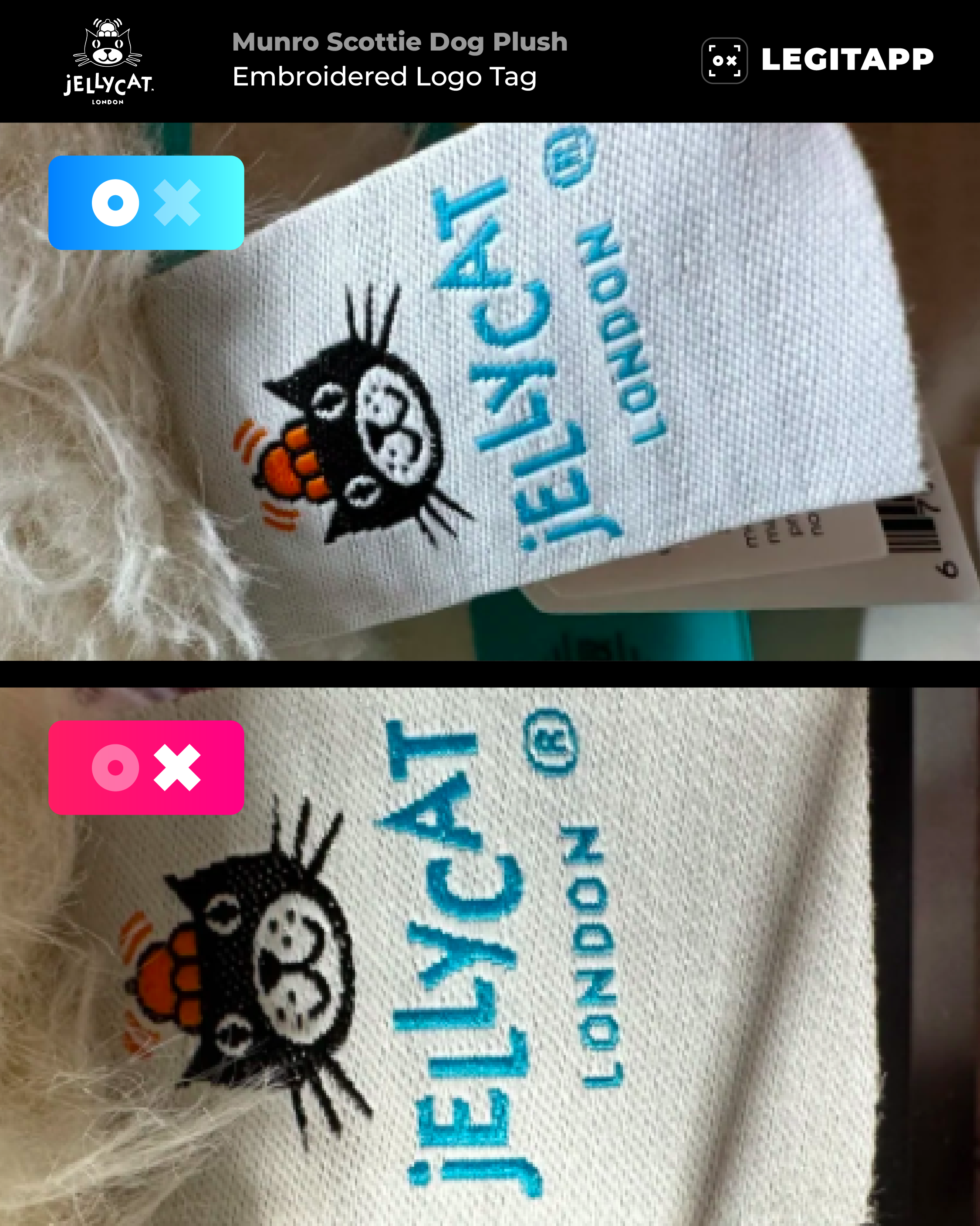 Unsure whether your Jellycat Munro Scottie Dog is authentic? LegitApp offers a reliable photo-based review combining advanced AI analysis and experienced human authenticators to evaluate key details like label fonts, embroidery quality, and material proportions.