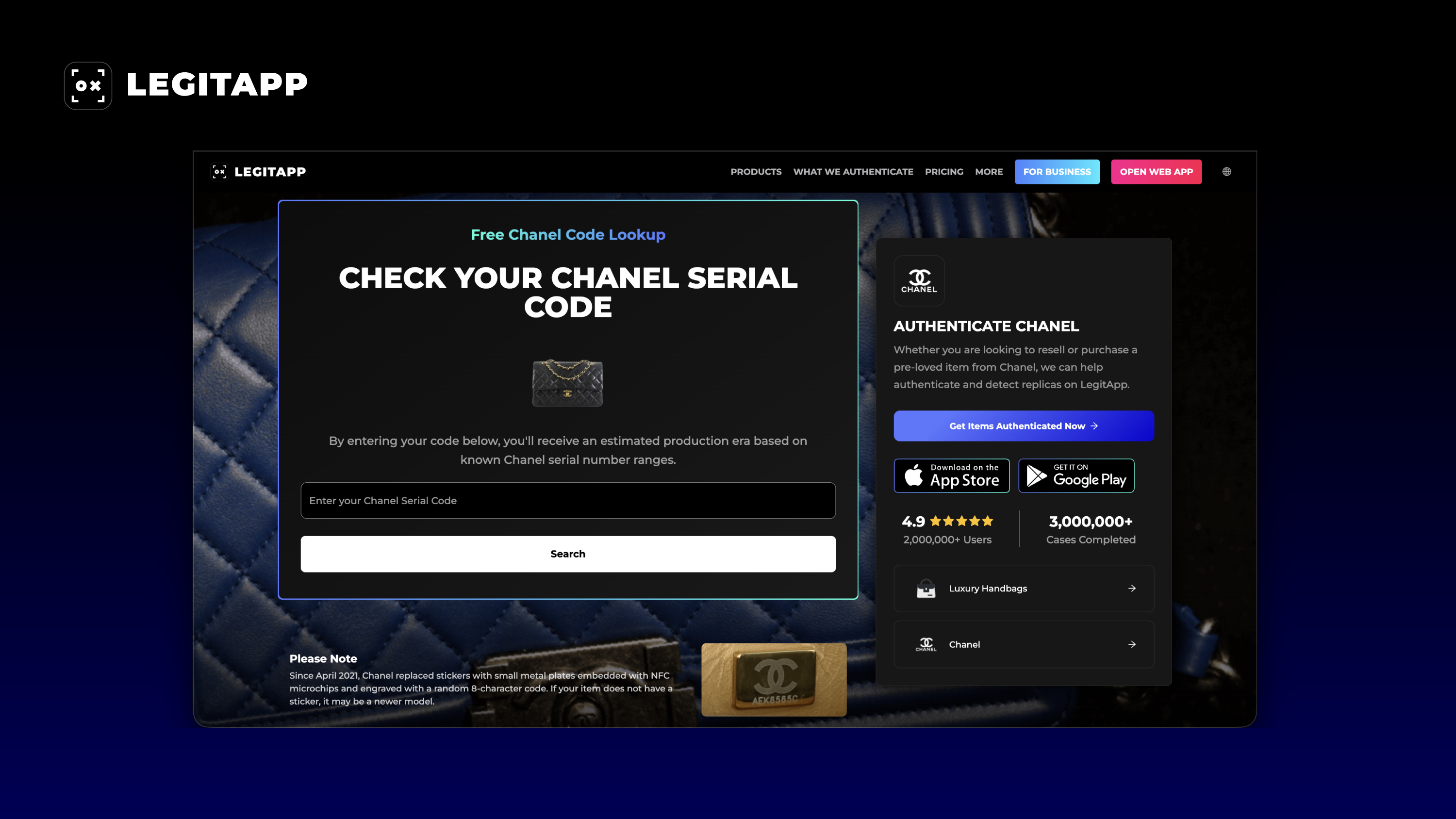 Go to the LegitApp Chanel Serial Code Checker.
